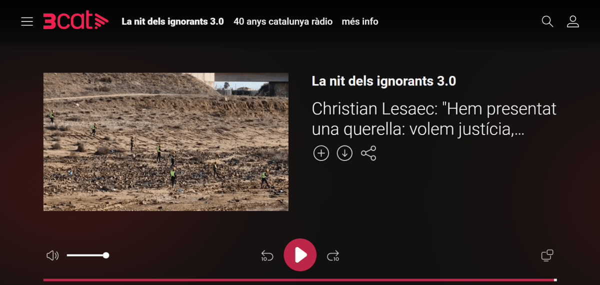 Podéis escuchar la entrevista completa en el siguiente enlace: https://www.3cat.cat/3cat/christian-lesaec-hem-presentat-una-querella-volem-justicia-saber-que-va-passar/audio/1233007/